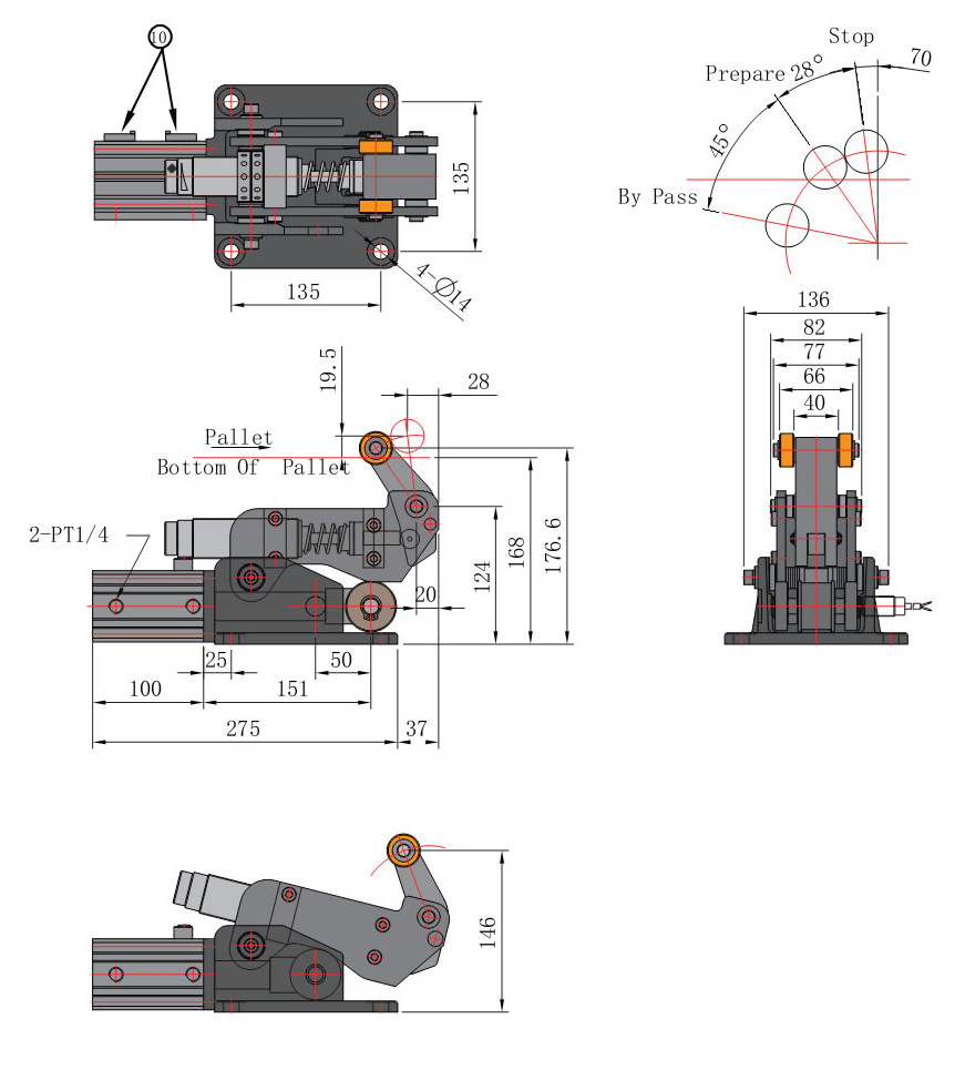 2. Cylinder Type 阻挡气缸类型: L;Damper Stopper Cylinder(滚轮杠杆式缓冲器阻挡气缸)